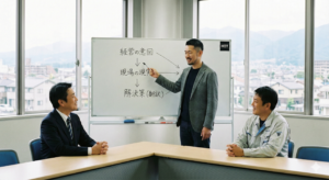 打ち合わせが終わり、経営層の方が席を外したあと、